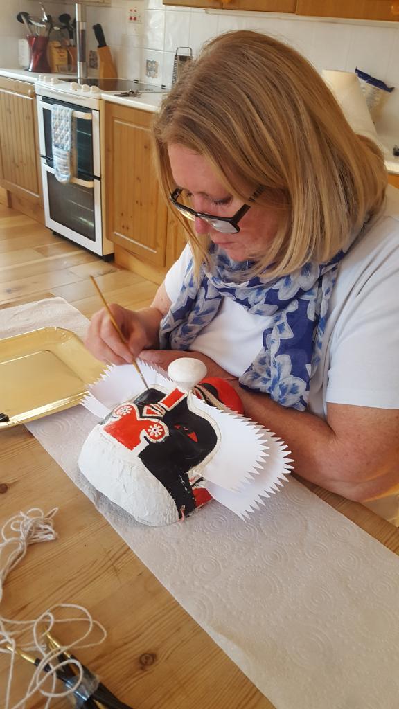Due to the Coronavirus we are unable to deliver our Kathakali workshops and performances until next year but there is still a lot of work to do to prepare the Kathakali costumes and masks.